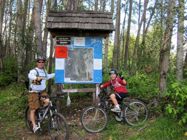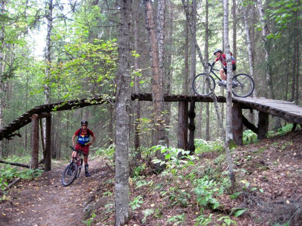 The mountain biking in Smithers is best described as “Old School”. There are 3 distinct riding areas around town and all are downhill trails with mostly black and blue level trails. We chose to ride The Bluff trails as they seemed the most family friendly. Unfortunately they are also the one area that is not accessible via shuttle. A five km ride was 3km uphill and 2km downhill.