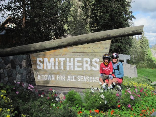 We hit the Smithers Riverside Municipal Campground after a very long day of driving on Weds September 4th. It took us 8 hours to travel down the bulk of the Stewart-Cassiar highway due to road conditions, construction and a small adventure in search of gas. At $29.00 per night (electricity, water, sewer, firewood, showers & wi-fi) it is a great place for families. There is a fabulous all wood sustainable playground for kids that is within sight of every campsite so the kids can wander off safely.